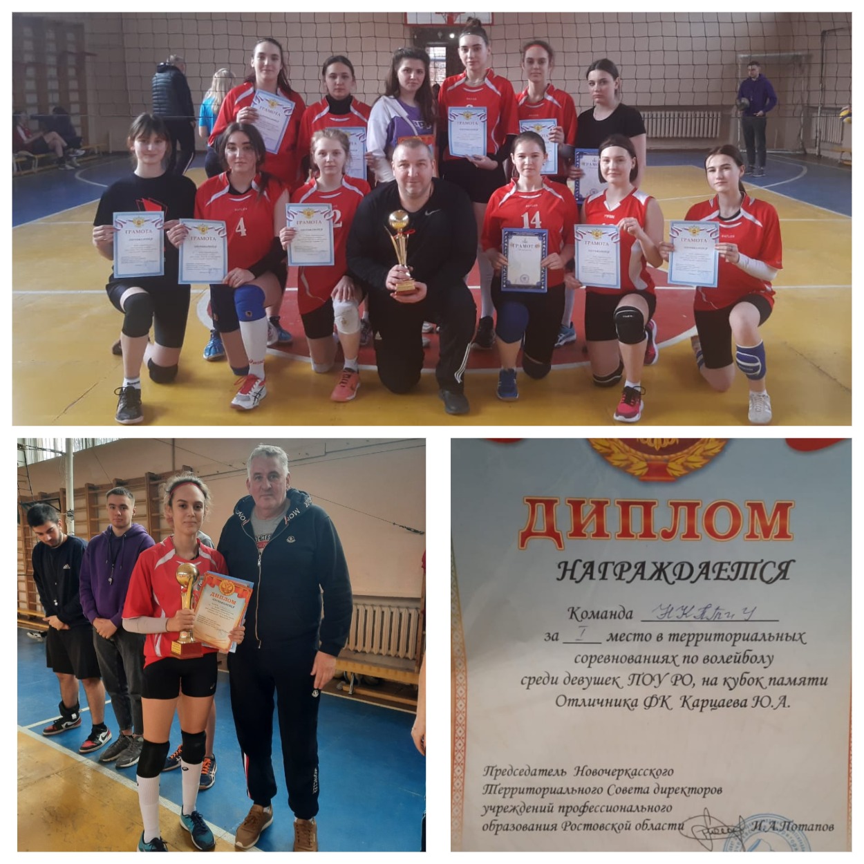 В результате напряжённой борьбы победителем турнира стала сборная Новочеркасского колледжа промышленных технологий и управления. Эта победа стала пятой по счёту: уже пять лет подряд 1 место в областном турнире, посвящённом памяти тренера Карцаева, переходящий кубок достаётся женской сборной НКПТиУ по волейболу.