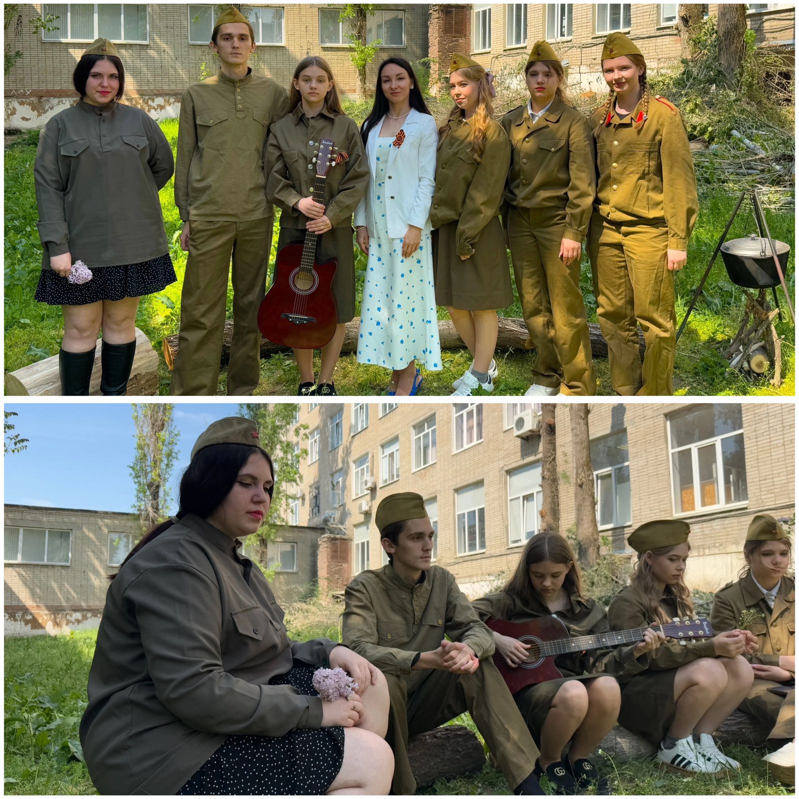 Советник директора по воспитанию и взаимодействию с детскими общественными объединениями, Елена Лукина совместно со студентами Новочеркасского колледжа промышленных технологий и управления провели акцию «В 6 часов вечера после войны» в виде инсценировки на привале у костра.