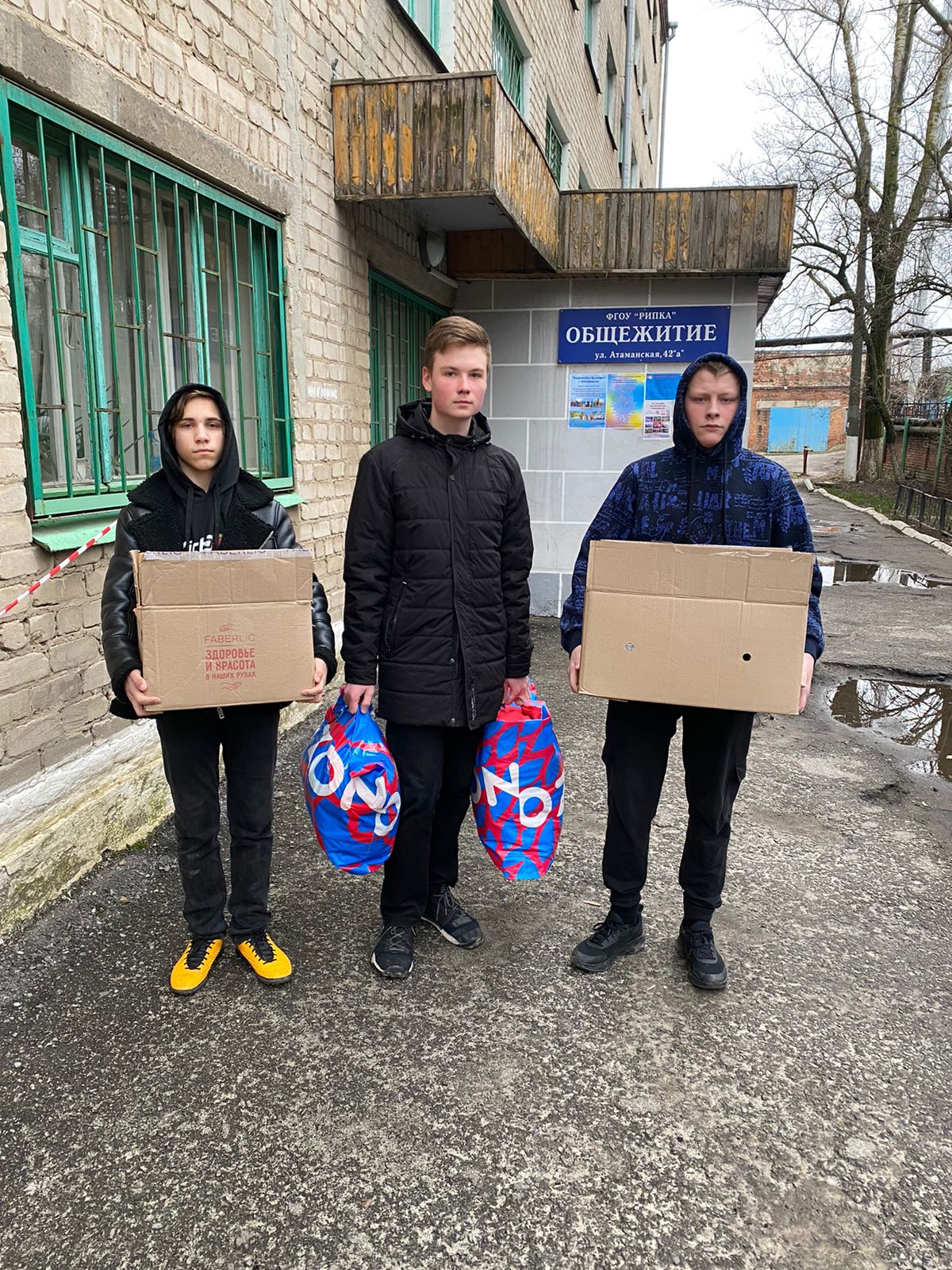 В течение нескольких дней студенты и преподаватели приносили в колледж необходимые для беженцев вещи: постельные принадлежности и дезинфицирующие средства, предметы бытовой химии и продукты питания, памперсы и детские игрушки. Всего набралось 19 ящиков.