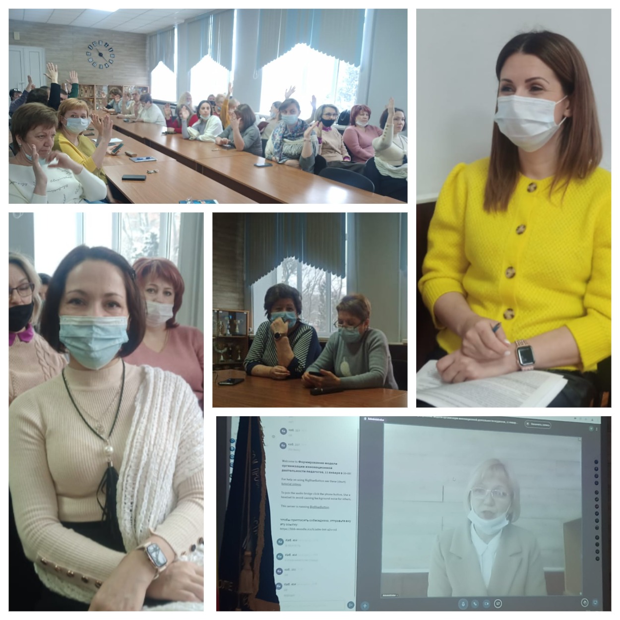 Чтобы соблюсти противоэпидемические требования, преподаватели собрались не все вместе, а разбились по нескольким, по цикловым комиссиям. Докладчиков слушали дистанционно, посредством видеоконференцсвязи.
