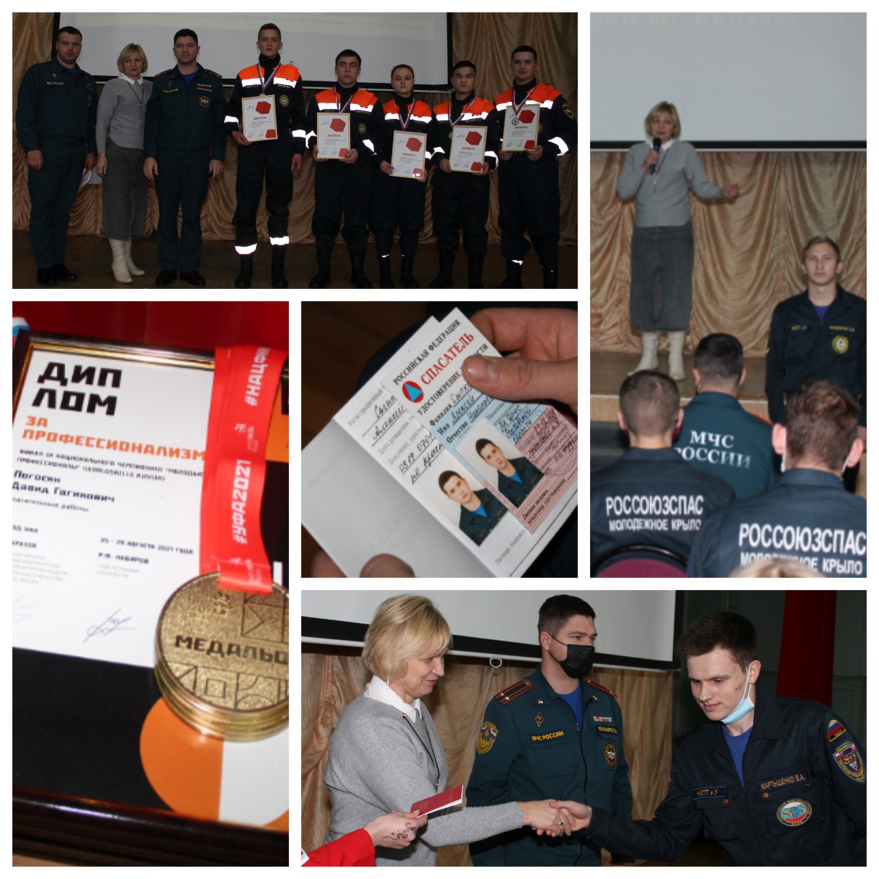 Вручением книжек процедура не ограничилась. Студенты-спасатели НКПТиУ не первый год с достоинством представляют Ростовскую область на конкурсах профессионального мастерства по стандартам Ворлдскиллс по компетенции «Спасательные работы». Давиду Погосян, Максиму Скорик, Анне Кулешовой, Алексею Егорову и Юрию Сторчилову вручили заслуженные награды - дипломы за профессионализм и медальон финала IX Национального Чемпионата «Молодые профессионалы» (ВорлдскилссРоссиия) по компетенции спасательные работы, который прошел в августе 2021 в Уфе.