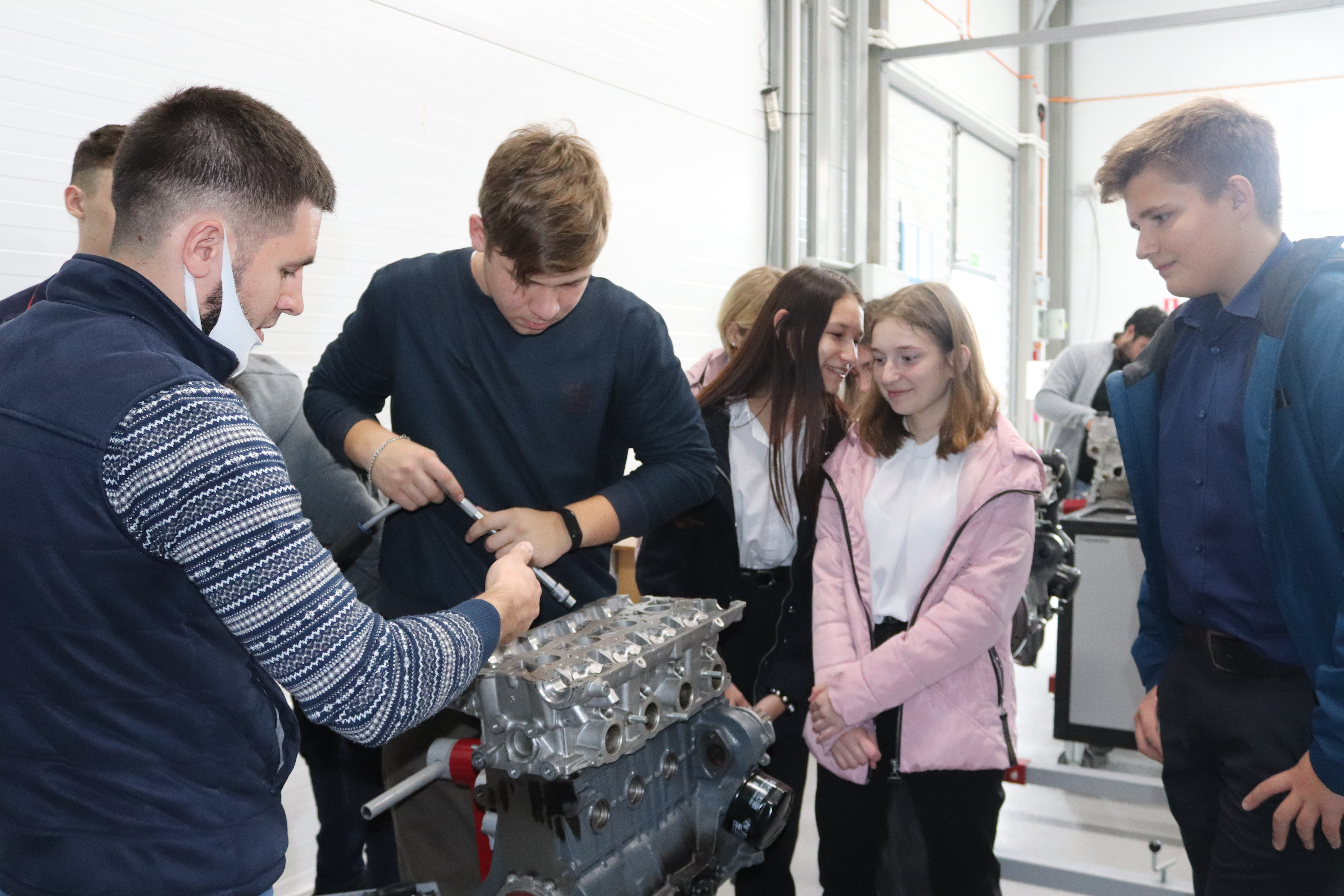 Мероприятие состояло из трёх блоков. В первом представители автопредприятий рассказали, какими компетенциями должен обладать молодой специалист, приходя на работу в автосервис. Во втором – отвечали на вопросы завтрашних автомехаников. А в третьем хозяева площадки – студенты – провели экскурсию по автомастерским для гостей, и дали попробовать свои силы выпускникам школ в некоторых компетенциях.