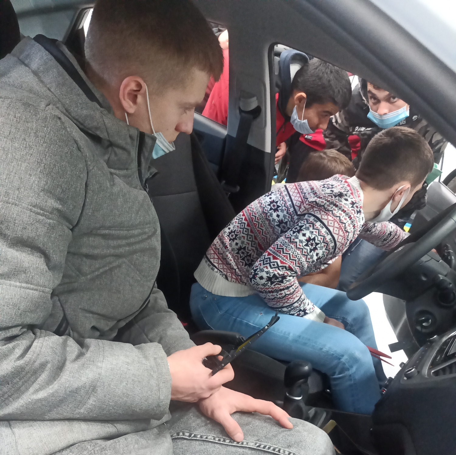 Здесь показывают и рассказывают не преподаватели, а студенты – всего на несколько лет старше пришедших в автомастерские НКПТиУ школьников. Ничего удивительного: это же профпробы, один из самых эффективных форматов профессиональной ориентации, способствующий погружению в профессию и осознанному выбору будущей специальности.