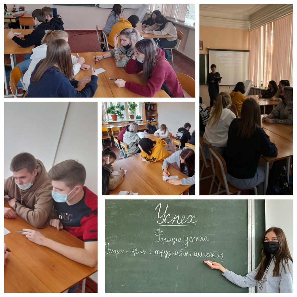 С помощью предложенных заданий студенты научились составлять план реализации целей и пришли к выводу, что каждый человек может сделать себя успешным абсолютно в любой профессии. Также в ходе дискуссии вывели формулу успеха.