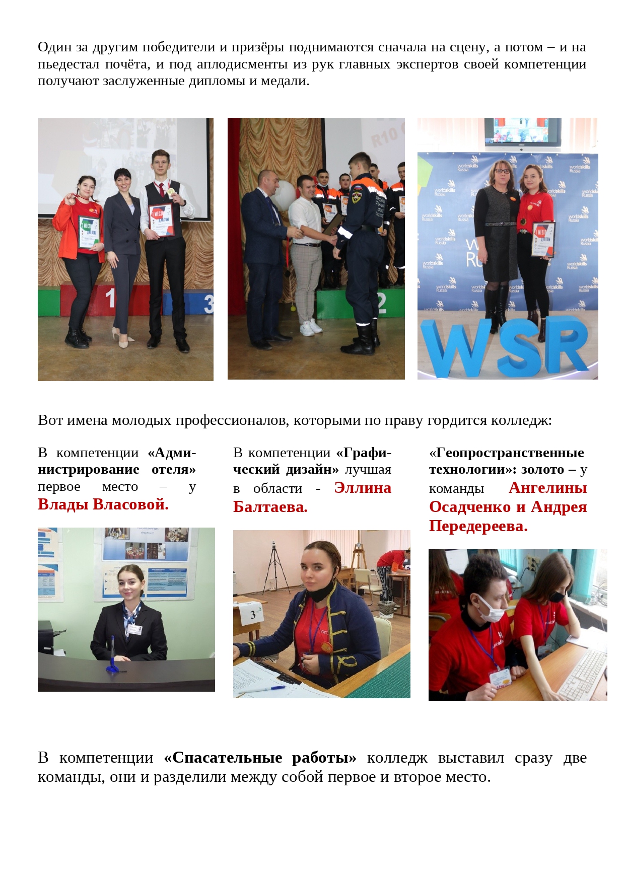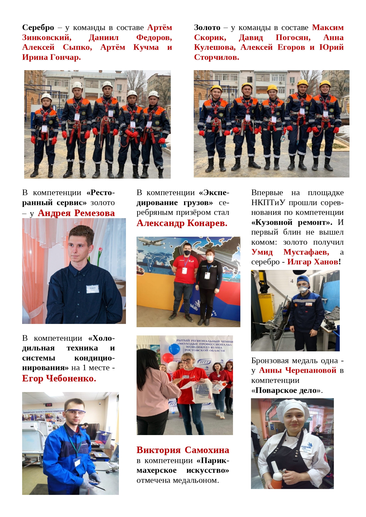 Для состязания по ещё четырём компетенциям («Парикмахерское искусство», «Предпринимательство», «Ремонт и обслуживание легкового автомобиля», «Экспедирование грузов») - студенты НКПТиУ отправятся в другие учебные заведения региона – в Ростове, Новошахтинске и Таганроге.