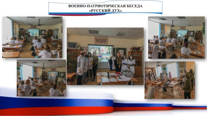 27 января 2021 года в группе Вет-182 Агротехнического отделения классным руководителям Средняк Ю.В. в рамках месячника военно-патриотического воспитания была проведена военно-патриотическая беседа «Русский дух». Патриотизм как важный элемент отечественной гуманитарной науки, культуры и воспитания имеет богатую историю и глубокие традиции. Он всегда рассматривался как воплощение мужества, доблести и героизма, силы русского народа, как необходимое условие единства, величия и могущества Российского государства. Именно поэтому целями данного мероприятия явились: воспитание уважения к Российской истории, достижениям русского оружия; уважения к ветеранам Великов Отечественной войны; к Российской армии; формирование у воспитанников желания служить в армии и готовиться к этой службе; воспитание гражданственности и патриотизма. В рамках беседы обучающиеся познакомились с определением термина «патриотическое воспитание», его видами и направлениями; попытались ответить на вопрос «Почему необходимо помнить и знать историю своей страны?»; великими полководцами нашей страны. Минутой молчания, завершившей мероприятие, студенты почтили память всех тех, кто защищал Родину на протяжении всей истории нашего Великого Российского государства!