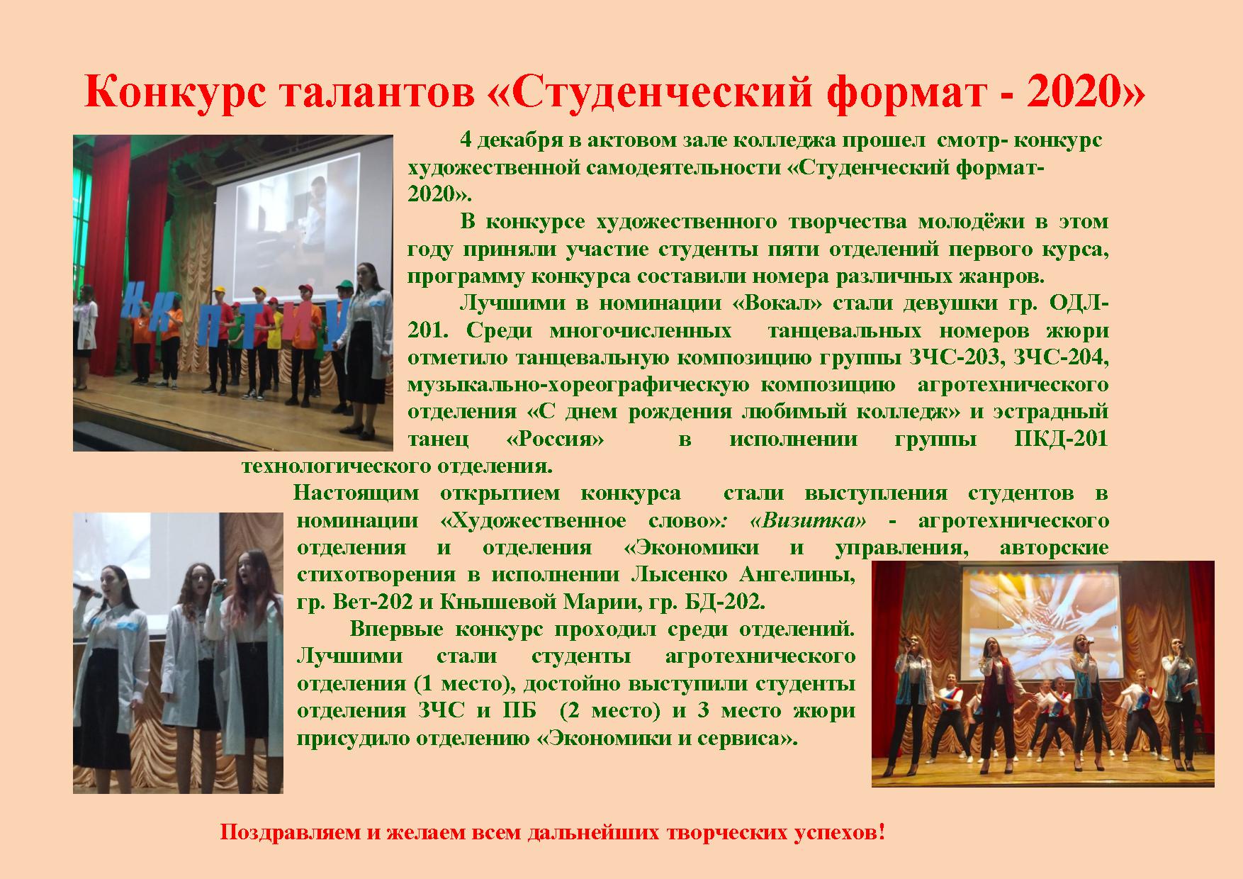 11.12.2020 Конкурс талантов «Студенческий формат - 2020»