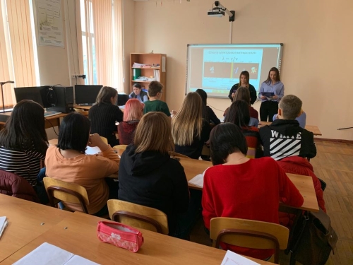 В рамках проведения Дня интернета члены кибердружины колледжа Дубровская Дарья и Никитина Екатерина провели информационную пятиминутку студентам нового набора по теме «Безопасность в сети интернет».