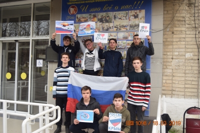 Вот такими словами началось это мероприятие. Юноши с российскими флагами и плакатами о Крыме, под песню «Слава тебе, мой Крым», выразили переполняющее их чувство гордости за свою великую Родину.