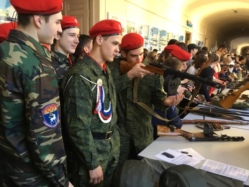 В ходе урока Мужества была спланирована демонстрация образцов стрелкового вооружения Красной Армии СССР времен ВОВ, современной вооружение и форма одежды ВС и Национальной Гвардии РФ.