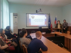 Руководитель «Школы молодого избирателя» Черчепова Т.М. рассказала студентам 3, 4 курсов о значимости предстоящих выборов, о возможности принять участие в голосовании 18 марта 2018 года и ответила на интересующие их вопросы.