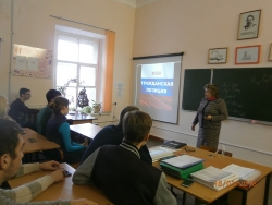 18.01.18 в группе ОП-161 (классный руководитель Борисенко И.В.) проведён классный час на тему: «Твоя гражданская позиция». Самое лучшее выступление было студента Карцева Д., который выступил с информацией о молодежном форуме на тему: «Моя гражданская позиция», затем было проведено анкетирование студентов , в результате была выявлена активность и пассивность будущих избирателей.