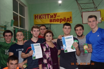 Невозможно переоценить социально-воспитательную значимость спортивных мероприятий, которые являются эффективными действующими инструментами, способствующими развитию у молодежи гражданственности, патриотизма, формирования умений и готовности к их активному проявлению в различных сферах жизни общества, верности конституционному и воинскому долгу, высокой ответственности и дисциплинированности. В плане реализации воспитания гармонично развитого поколения, достижения им духовного и физического совершенства 04.12.2017 г. в главном спортивном зале НКПТиУ прошел заключительный этап соревнований по мини футболу между юношами, проживающими в общежитиях №1 и №3.
