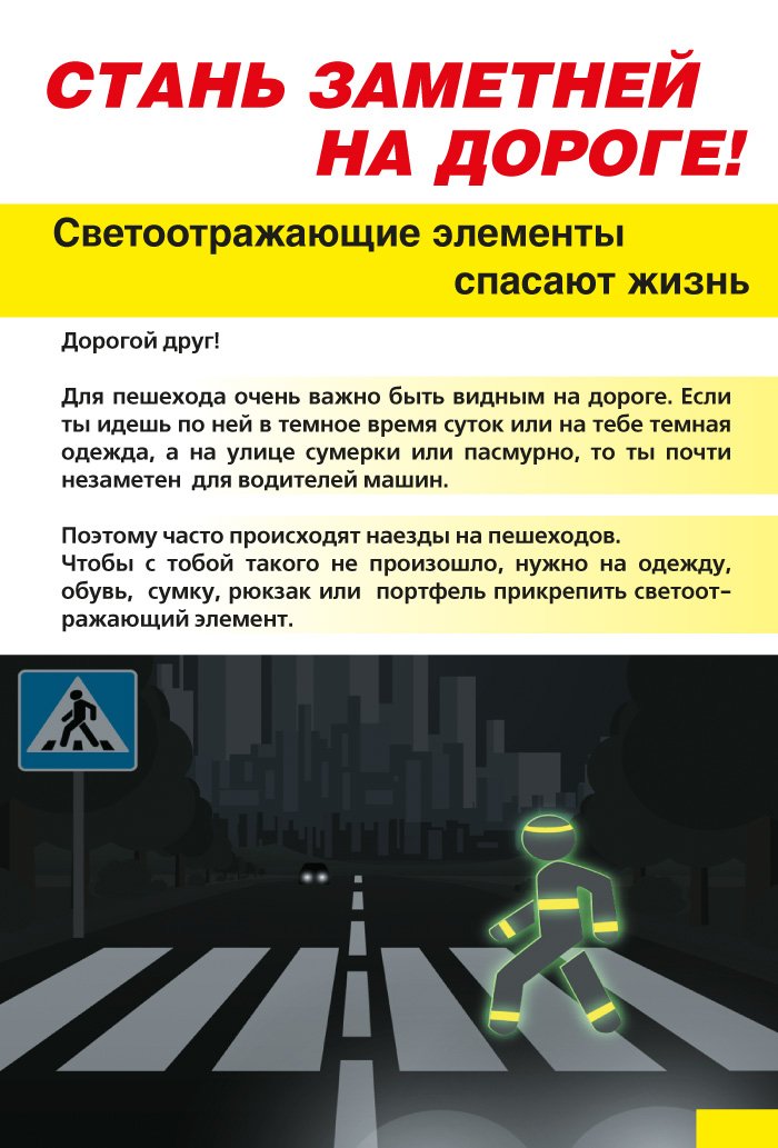 Призываем всех активно использовать световозвращающие элементы. Это простое действие может спасти жизнь. Берегите себя и своих близких!