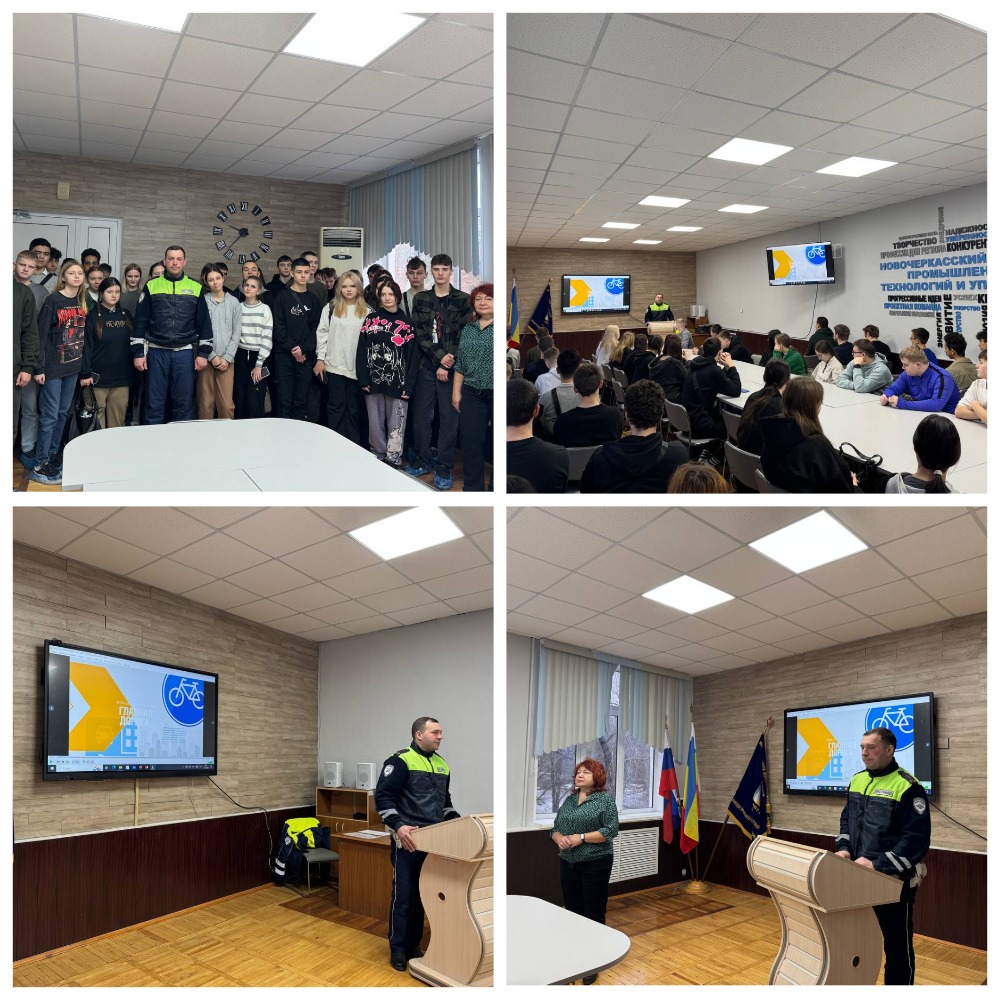 В НКПТиУ состоялась встреча, на которой студенты Технологического и Агротехнического отделений получили ценные уроки по безопасности на дорогах от инспектора ДПС ОВ ДПС Госавтоинспекции МУ МВД России «Новочеркасское», лейтенанта полиции Александра Чернова.