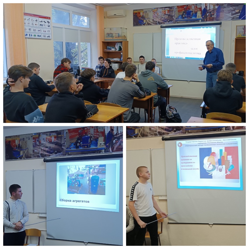 Старшекурсники подготовили свои выступления в формате презентаций и рассказали об опыте прохождения производственной практики на базовых предприятиях колледжа в Ростове-на-Дону, Новочеркасске и Аксае.