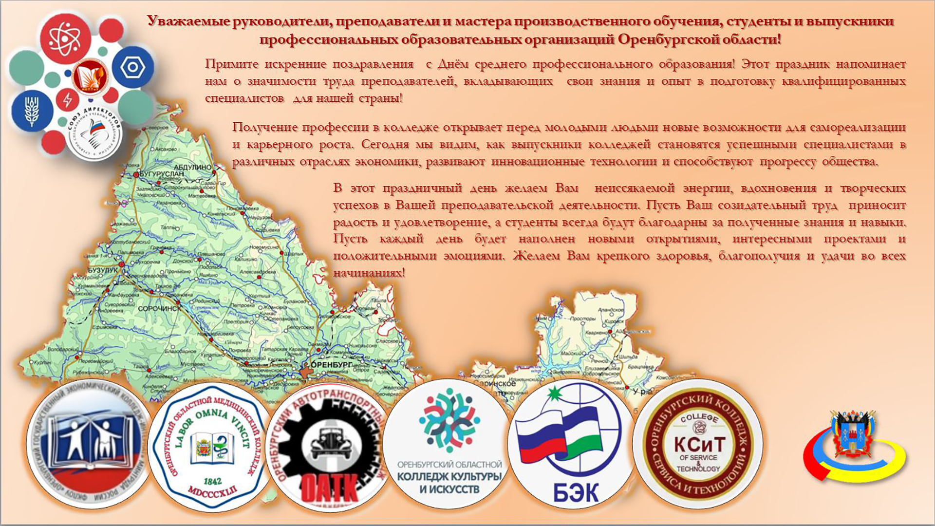 Нашему региону выпала возможность поздравить с наступающим Днём СПО коллег из Оренбургской области.