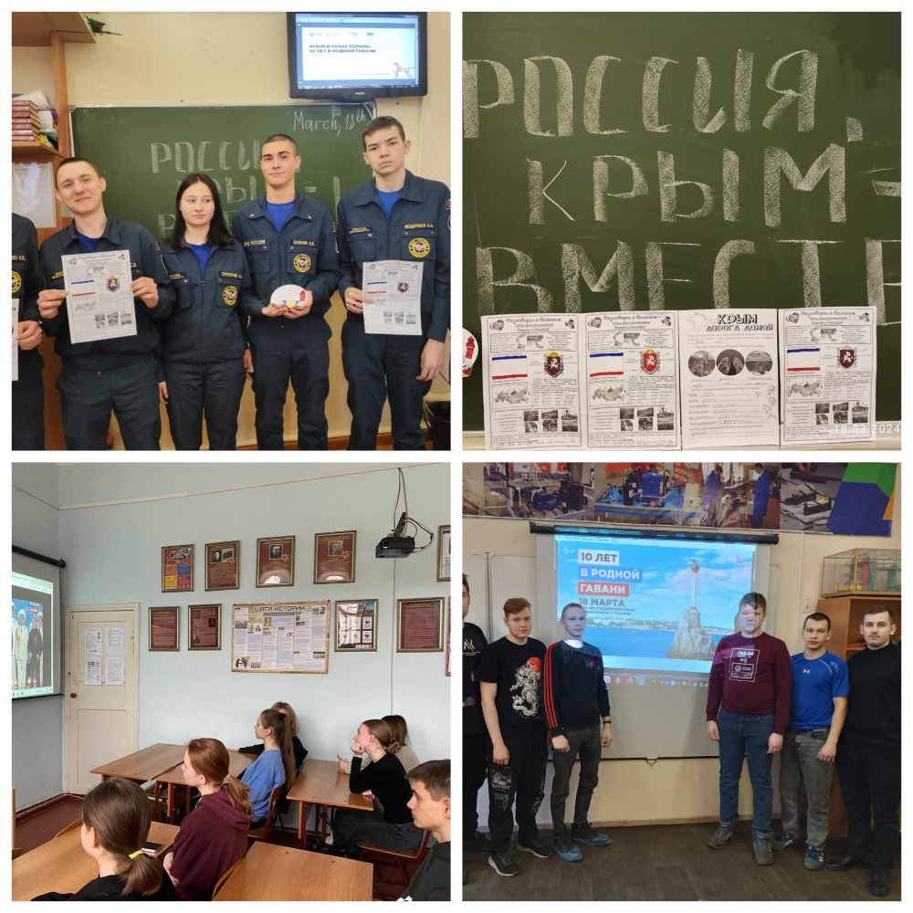 Сегодня в НКПТиУ во всех учебных группах состоялся классный час «Крым и Севастополь: 10 лет в родной гавани». Во время занятия ребята узнали о Крымском полуострове, о его социально-экономическим положении и значении для нашей страны.