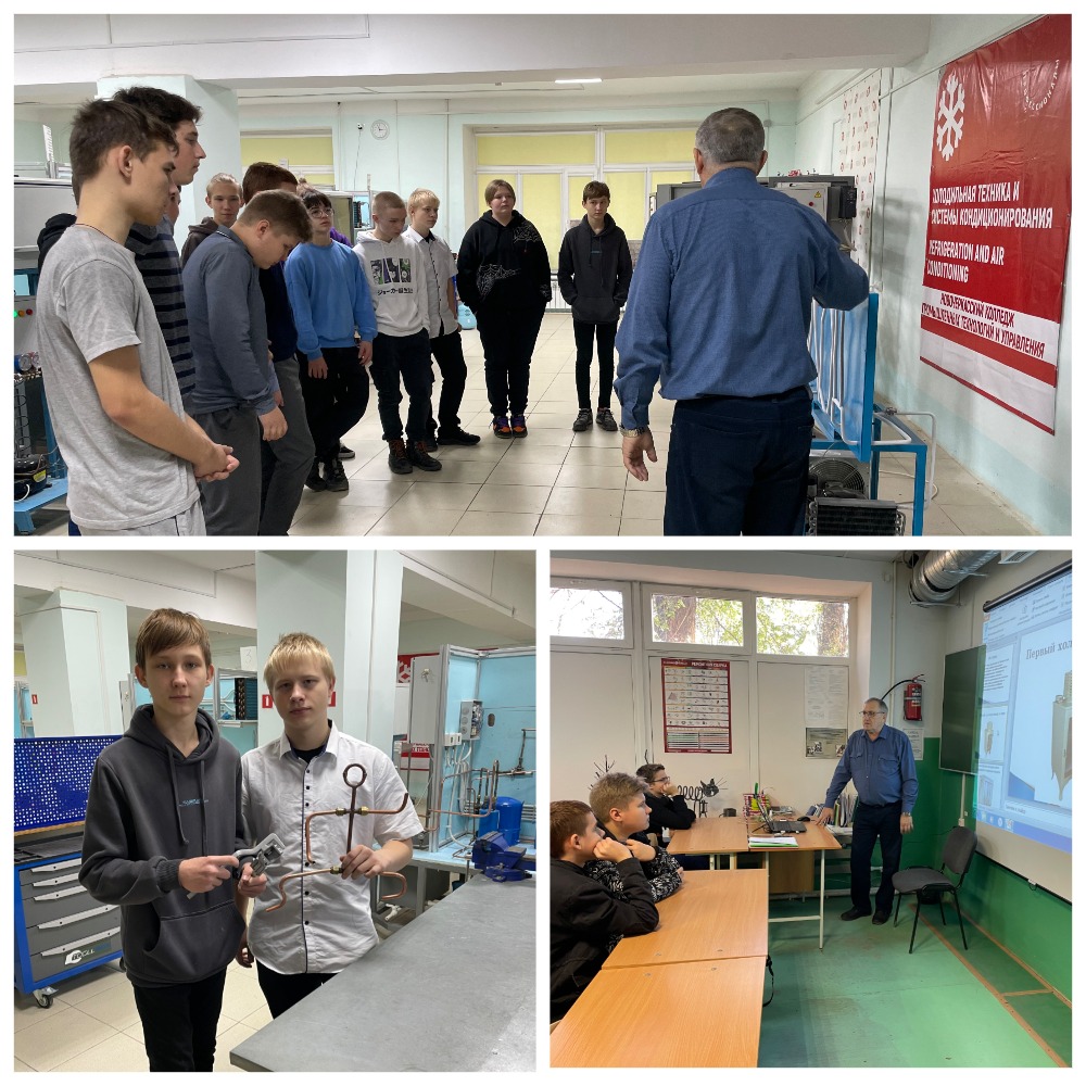 На учебном полигоне студенты ознакомились со стендами технического творчества «Ледовый каток» и «Холод». Виктор Фёдорович рассказал ребятам о чемпионатном движении профмастерства «Профессионалы» и о региональном этапе чемпионата, который проходит в стенах колледжа, о достижениях студентов специальности в этой области.